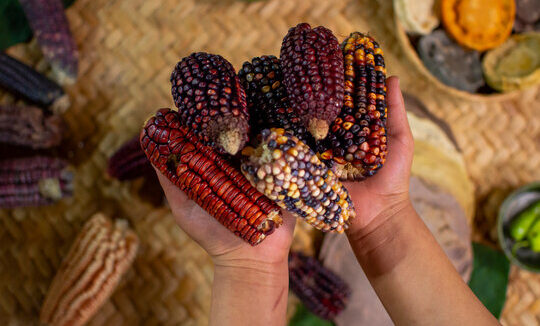 ofreciendo el sagrado alimento al inextinguible y eterno hombre de maíz.